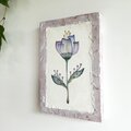 モデリングペースト等でテクスチャーを付けた上に、アクリル絵の具を水彩のように使用し、滲むニュアンスのある花を描きました。