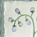 モデリングペースト等でテクスチャーを付けた上に、アクリル絵の具と水彩鉛筆を使用しています。