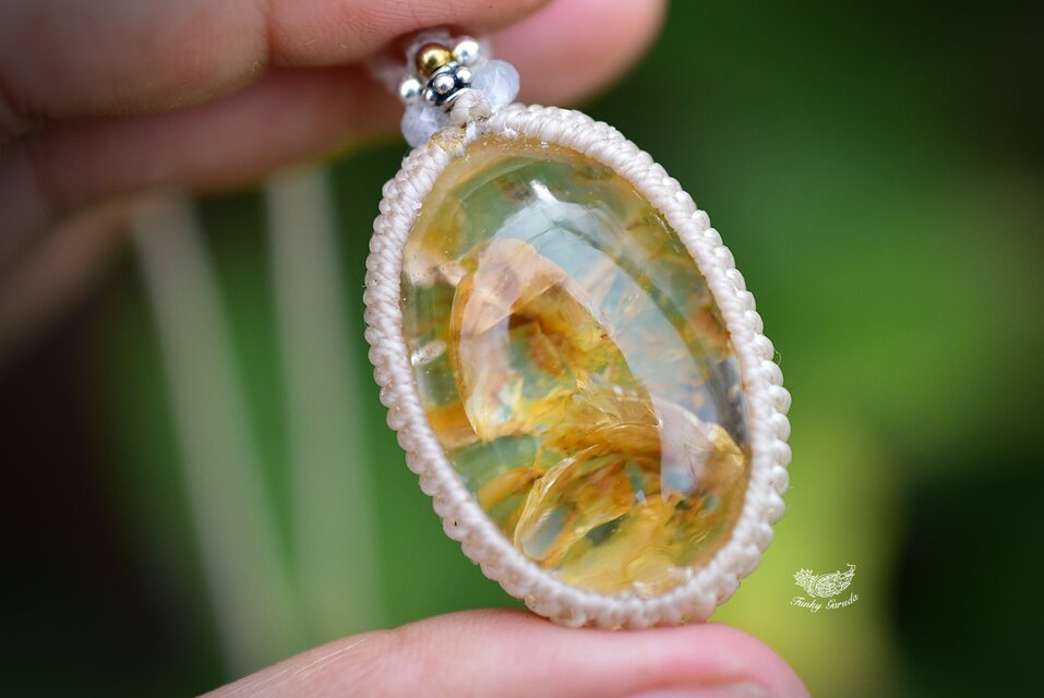 立体ライモ★ライモナイトインクォーツ マクラメネックレス731