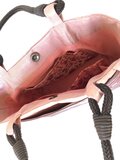 上品な作品です。 きわめて軽く、かつしっかりした作りです。収納力があるので、和装のサブバックとしても、洋装のメインバッグとしても使えそうです。 とても気に入りました。素敵な作品をありがとうございます。 個人的に、紫系の帯バッグや、帯ベルト(写真参考)を、お時間が許せばお作り頂けると嬉しいです。勝手申しましてすいません。