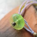 ペリドットのように輝く黄緑のヴェネチアンシードビーズをつなぎました。
