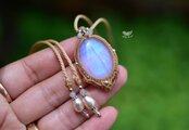 高貴な香り★レインボームーンストーン マクラメネックレス741