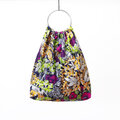 金属のリングハンドルとアフリカ布のコントラストが、お洒落で洗練した雰囲気を演出します。リングは持つだけでなく、肘まで腕を通すことができるサイズ感。シンプルな装いのアクセントとしておすすめのアイテムです♪