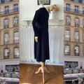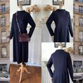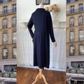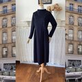 濃紺・綿ニットのワンピース『ボトルネック・ロング丈・ウエストギャザー』清楚で凛としたワンピース