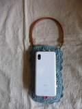 毛糸で伸びますので大き目のスマホでも入ると思います。