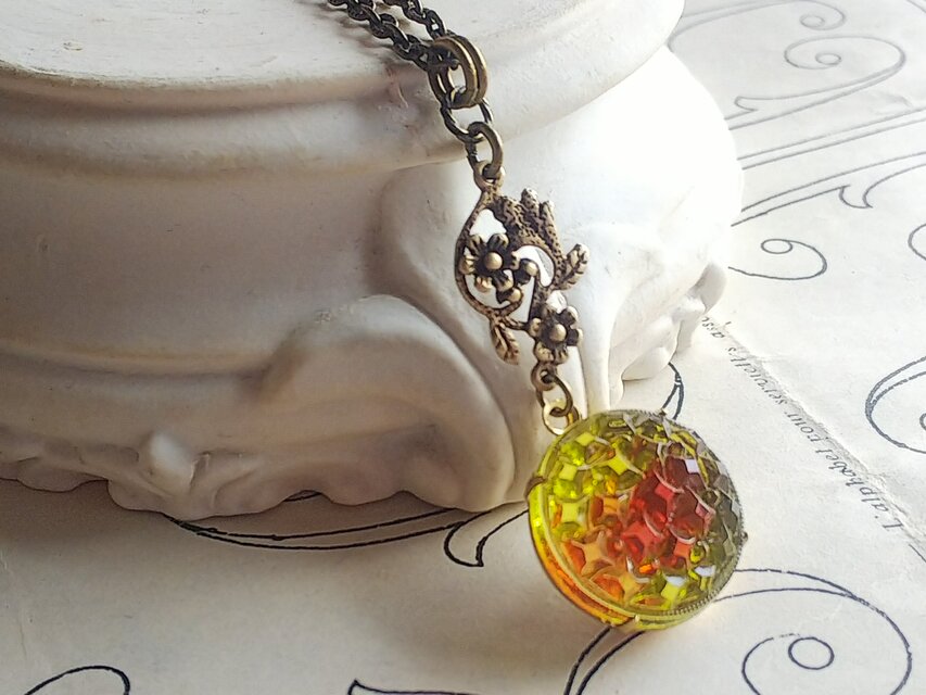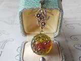 Germaヴィンテージ、約18㎜ほどのオリーヴ色に朱色が入り込んだ愛らしいGlassカボションでお作りしましたネックレスです。