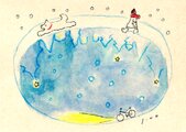 水彩えのぐ、水性ペン、アクリルガッシュを使用し絵を描いています。