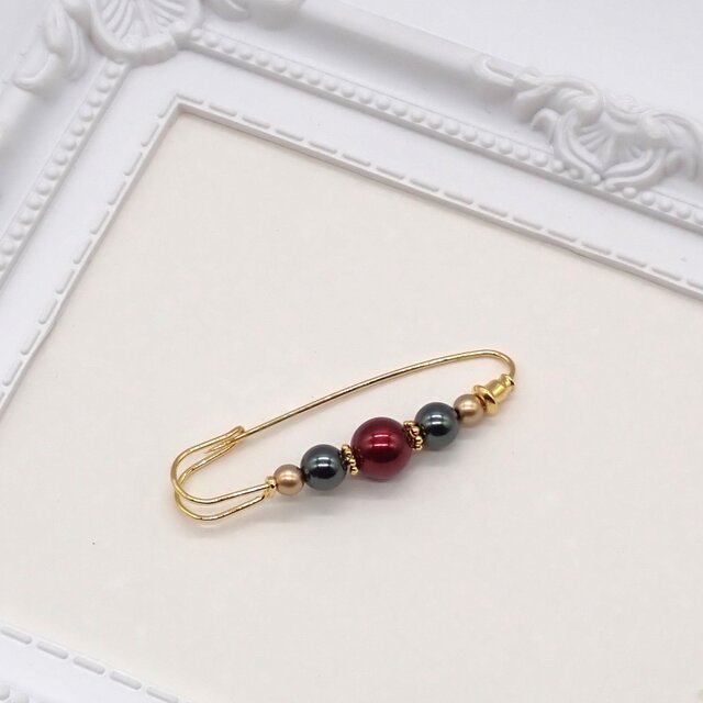 暖かく深みのある冬色のカラーパールのシンプルなデザインのブローチです。