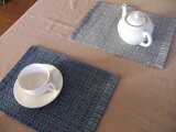 藍染した麻と生成りで2重織りにしたティーマットです。
