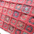 昔ながらのモチーフ編み「グラニースクエア」を様々な色で編みつなぎ、大きな一枚に仕上げました。