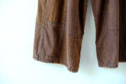 こちらのパンツはタイに長期滞在していた時に、懇意にしている工房で作ったものです。当時発注したものを作ってもらった際に出た端切れを引き取り、少しずつ四角に切り出してミシンを借りて作りました。裾やポケットの刺繍は、カレン族の服屋さんに頼んで縫ってもらっています。