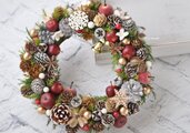 リース素材:アーティフィシャルフラワ-(造花):りんご・コニファー・ベリー飾り(ゴールド・白・赤)、など