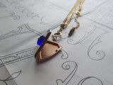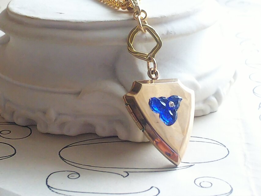 ヴィンテージ Blue-flower/ShieldーLocket クラシカルネックレス