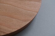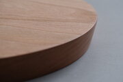 これまでのサイズよりもひと回り大きく直径27cm、厚さは2.4cmで製作しました。まな板としてもしっかり使えるサイズ。大きなサイズですが小回りも利く形なので、カッティングボードとしてパンやチーズなどを切ったり、盛り付けに使っても。