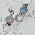 キャンディジェイド(花翡翠、6㎜)、マグネサイト(6㎜)の雪だるまのようなイメージのピアス(イヤリング/チャーム)です。
