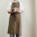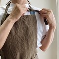 私は肩幅が狭くてクロスのエプロンでは肩紐がずれてしまうのです。首に掛けるタイプを探していました。リネンのエプロンが欲しくて、画像から見て生地感が良さそうでポケットもあってデザインがいいなと思い注文させて頂きました。 やはり、この生地感いいですね❗️デザインも体に寄り添っていい感じ❗️とても嬉しいです