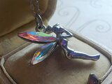 ヴィンテージ ティンカーベル(約30×22㎜)Crystalオーロラ/Silverトーンネックレス