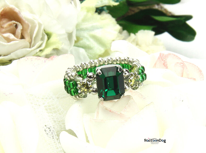 ビーズ,リング,コスチュームジュエリー,ビーズアクセサリー,ビーズリング,ビーズ指輪,スワロ,ジルコニア,ペリドット,エメラルド