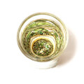 グラスの底にアワビ貝を漆で貼り、その周りを金彩で縁取ったぐい呑みです。