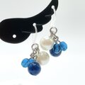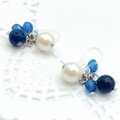 真っ白な樹脂パールに、深い青のソーダライト(6㎜)、チェコ・ファイアポリッシュを合わせたピアスです。