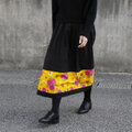 シックな黒のビエラ生地とカンガを合わせたことにより、独特の存在感のあるスカートに仕上がっています。シンプルなトップスと合わせるだけで、オシャレに可愛く着れます。