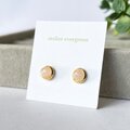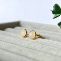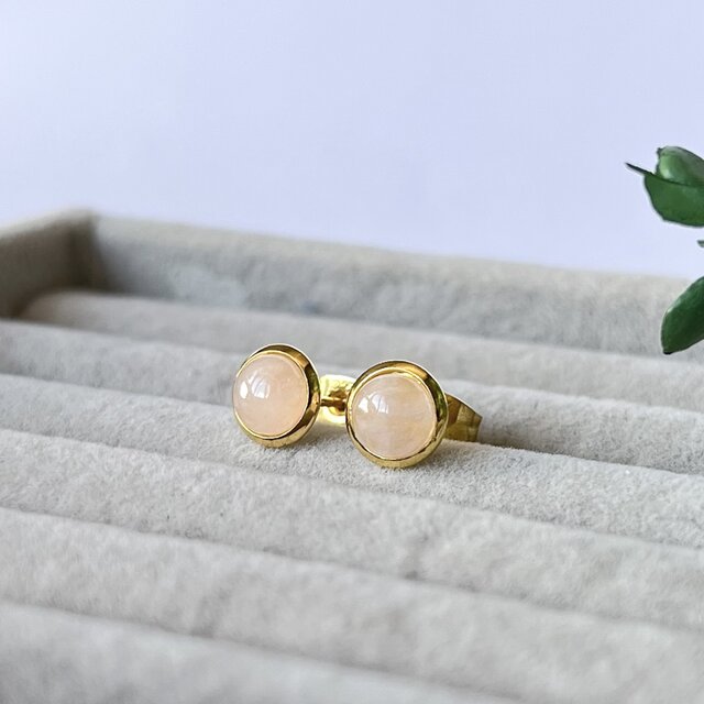 サイズも石の直径約6㎜、周りのゴールド色部分も合わせると約8㎜。さりげないサイズで、ちょうどよい存在感です。スタッドピアスですので普段使いもしやすいピアスです。