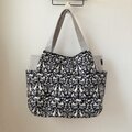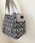 持ち手以外の部分にはすべて芯地を使用してしっかりと仕上げています。持ち手も生地を4枚重ねにして、丈夫に仕上げています。持ち手は長めにしていますので、肩掛けも可能です。