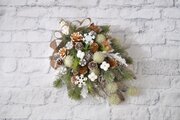 ベージュやグレージュのニュアンスカラーが美しい、ボリューム感のあるスワッグです。白バラ、ドライフラワー風の紅バラをアクセントにどこか時間を超えた幻想的な雰囲気も感じられてとても心惹かれます。 また、スワッグの向きや花器に応じた飾り方を提案して下さっているので、これから色々な表情を見つけて行ければと思います。今回も素敵な作品をありがとうございました。
