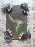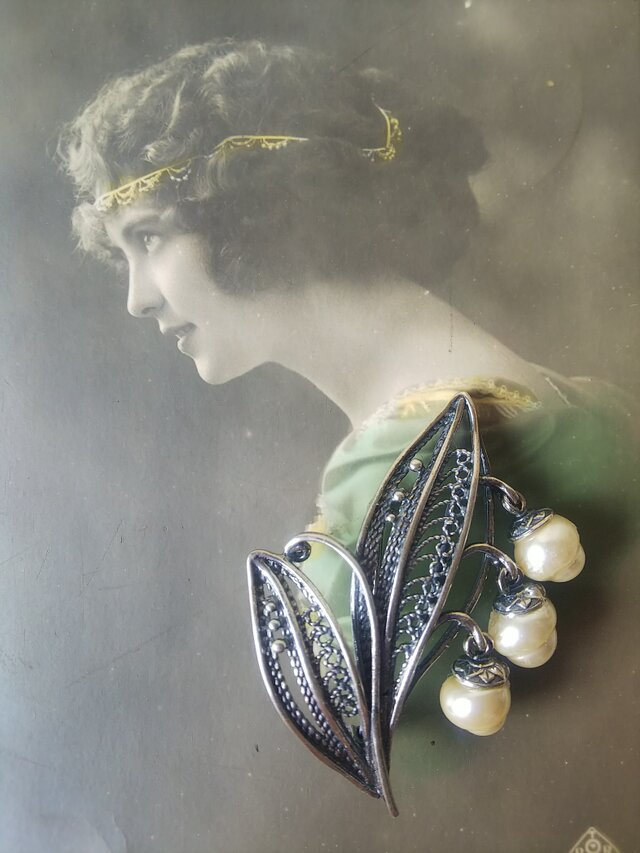 ヴィンテージ すずらん(Glass-Pearl)/Antiqueシルバー ブローチ