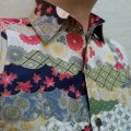 新作手作り長袖和柄シャツ(和文様雲に花)