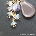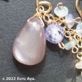 この時にワイヤーの中にチェーンを下げ、薄紫のジルコニアと、エチオピア産のプレシャスオパールのロンデルを下げています。