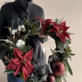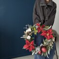 I made a wreath with red as the theme color in the image of a classical Xmas. Artificial flowers can be enjoyed long into Christmas. How about decorating it in the welcome space and welcoming visitors warmly?
