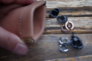 国内でタンニンなめしされる最高峰のヌメ革。タンニンなめし革は渋なめしともいわれ、ミモザなどの植物の液で数ヶ月かけてじっくり生皮から革へと変化します。その中でも表面を磨いたサドルレザーを使っています。匂い、感触をぜひお確かめください。