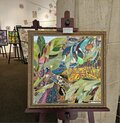 多彩な植物と動物たちの共生する命の輪を、グラスアートの技法と紅型布で表現しました。