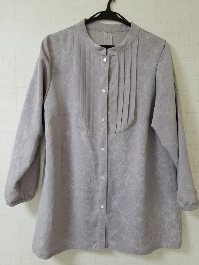 アンティーク着物(絹)からフロントヨーク切り替えピンタックの前開きのブラウスを作りました。