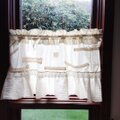 ナチュラルコットン♪トーションレースのアップリケカフェカーテン