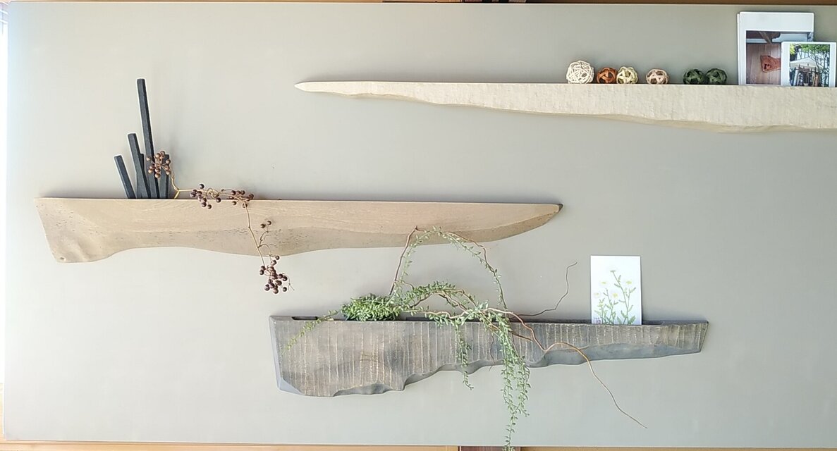 自然木の風合いを十分に生かしたディスプレイ ウォールラック。