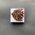 グリーンのデザイン部分には、グリーンの天然石ビーズとガラスビーズを使い、輝きのアクセントになっています。秋冬にぴったりのこっくりトーンカラーの鳥ブローチになります。