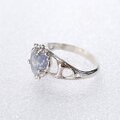 細かなブルーの針状デュモルチェライトを内包した水晶を可愛らしいデザインリングに仕上げました。