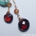 ピアスパーツにチェーンを下げ、シトリンの下に、モザンビーク産ガーネットを下げました。