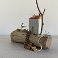 流木、ねじ・釘(赤錆加工)、ホワイトウッド(欧州スプルース、ドイツトウヒなど)、ステイン、ペンキ等で製作。ヤスリでダメージ感を演出しています。「潮騒とカモメの鳴き声、風の音」を感じていただければ幸いです。