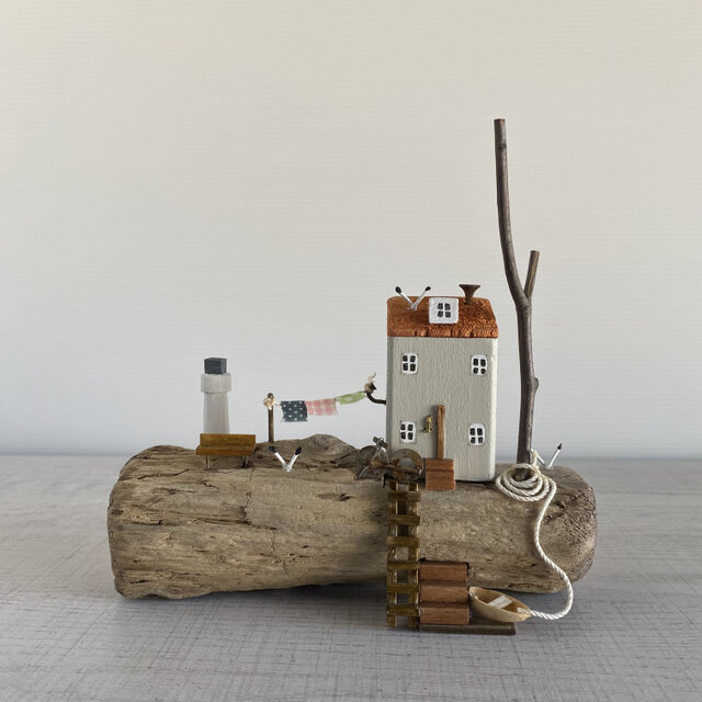 先ほど受け取りました。 流木の風合い、カモメ、岬の先にある白い壁の一軒家…ノスタルジーに誘われ.風や波音が静かに聴こえてきそうな雰囲気のある作品です。早速、リビングの棚に飾りました。 ありがとうございました!