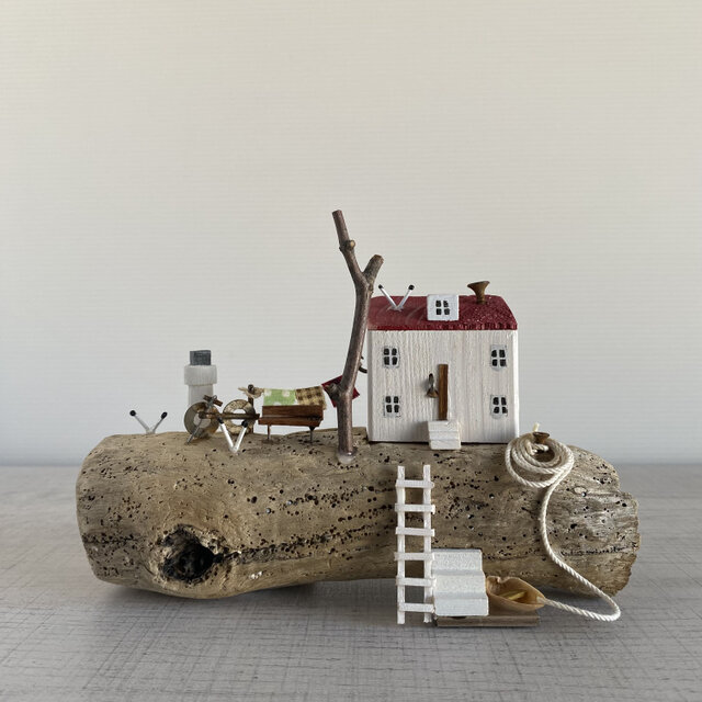 先ほど受け取りました。 流木の風合い、カモメ、岬の先にある白い壁の一軒家…ノスタルジーに誘われ.風や波音が静かに聴こえてきそうな雰囲気のある作品です。早速、リビングの棚に飾りました。 ありがとうございました!
