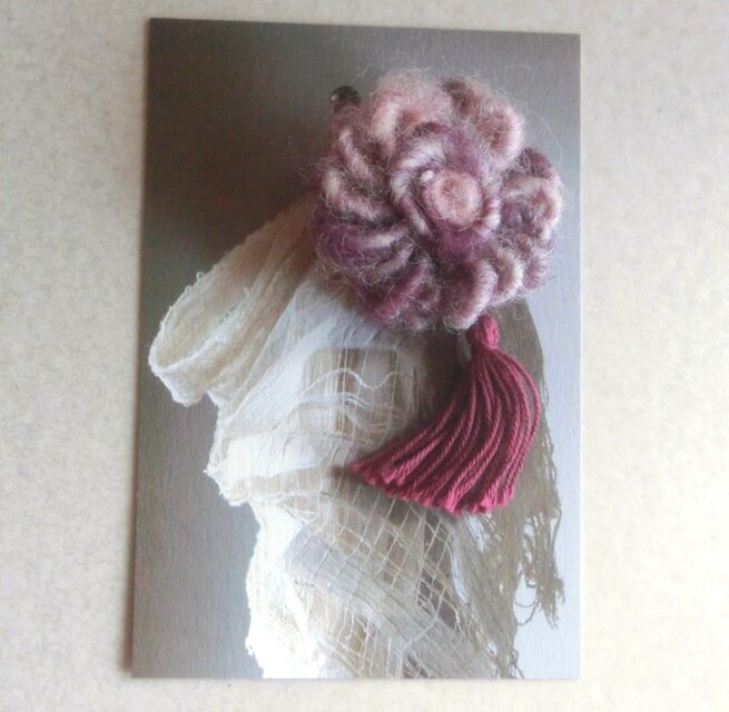 送料が選べる アートヤーン お花のブローチ NO2 クリップ付き