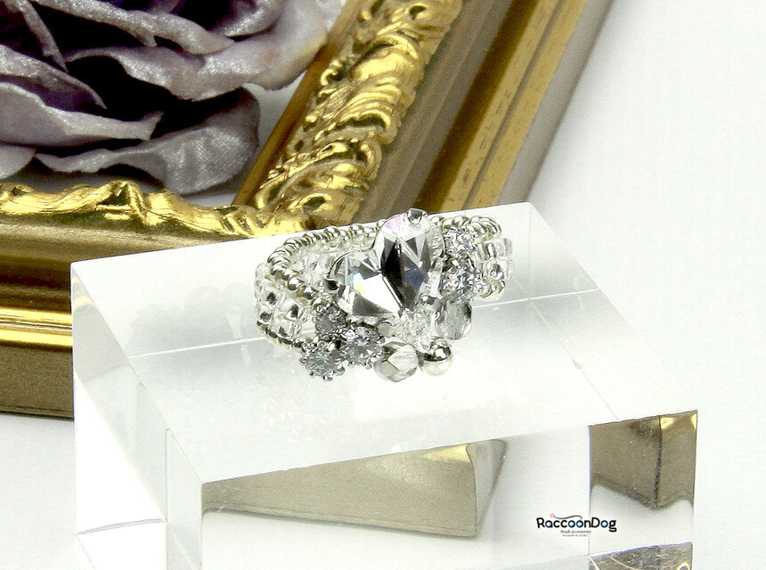 〔再販〕【スワロクリスタルシリーズ◆スワロ・変形♡シープカットリング】【スワロ/ジルコニア ビーズリング】《ビーズアクセサリー》