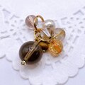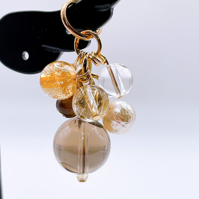 モチーフ部分:スモーキークォーツ、ルチルクォーツ、タイガーアイ、フローライト、クラック水晶、クリスタル、樹脂パール