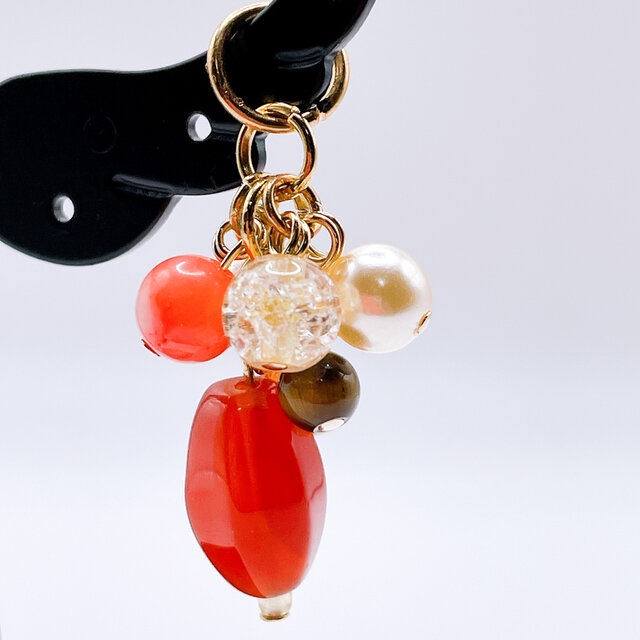 モチーフ部分:カーネリアン、オレンジガーネット、タイガーアイ、コーラル(珊瑚)、クラック水晶、樹脂パール