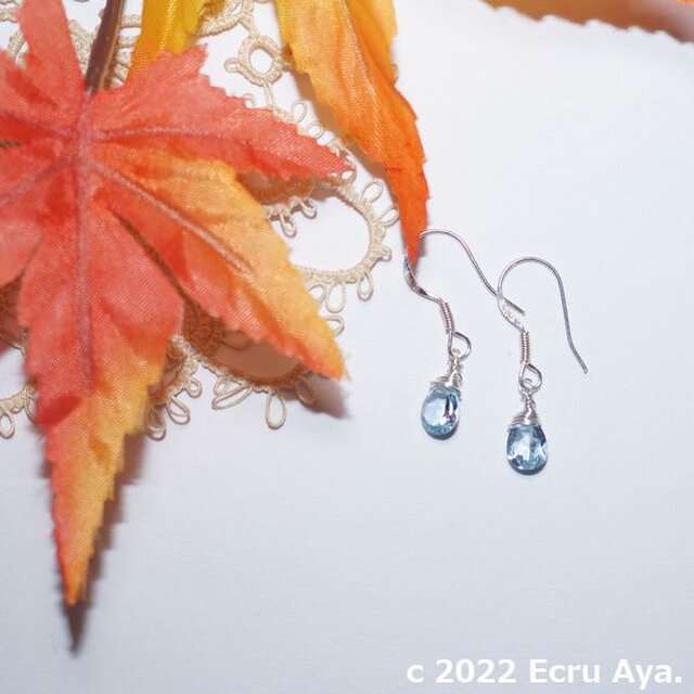 ピアスパーツにシンプルに、宝石質スカイブルートパーズAAAのペアシェイプファセットカットを下げました。