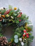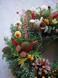 ヤドリギ・トウヒ・サンキライの実・ノイバラの実・ユーカリ(3種)・サオトメバナの実・ベルガムナッツ・アセビのつぼみ・ヒメスギ・ブルーアイス・コノテガシワ・カイヅカイブキ・ポプシー・レイランドヒノキ・アナベル・HBスターチス(2種)・ナンキンハゼの実・唐辛子・センニチコウ・クラスぺディア・ツルウメモドキ・レッドブルニア・松かさ・ヒペリカム
