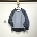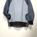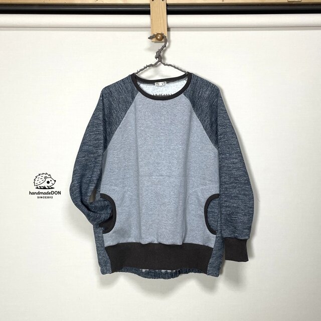 前だけ生地を変えてツートンにし、前には同リブ口のかわいいポケットも付いています。